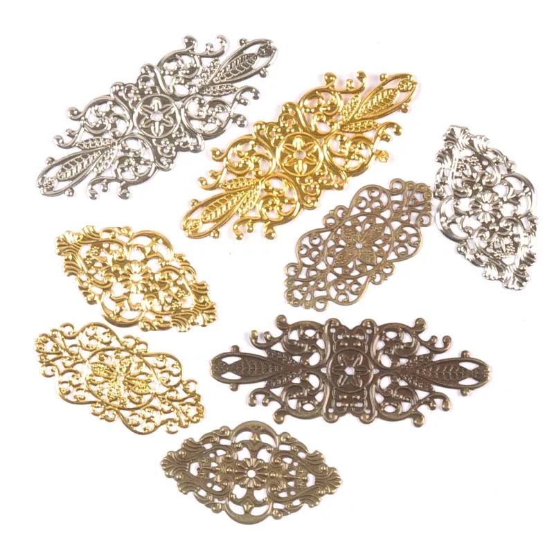 20Pcs Bronze/Copper/Gold/Silver Filigree Wraps Flower Connectors Metal Crafts Gift Decoration DIY Findings 4.8x3.5cm