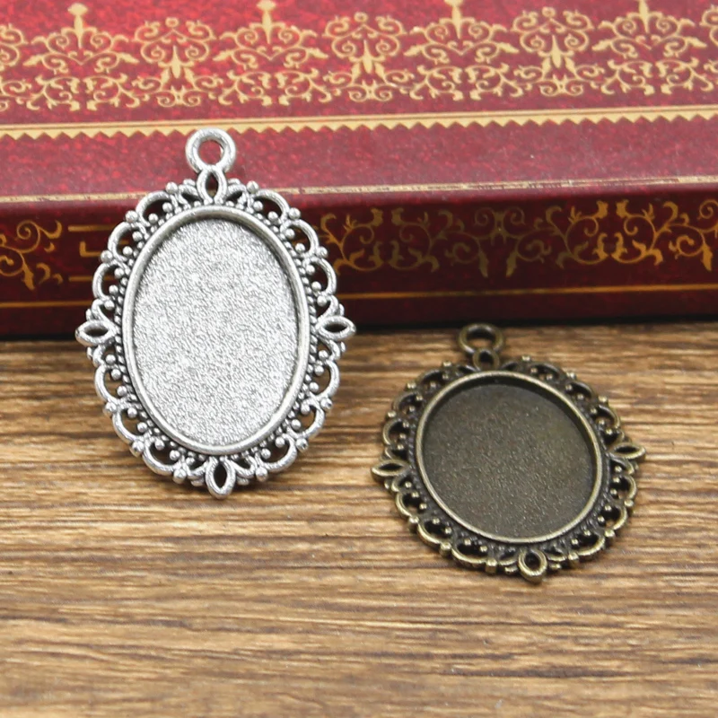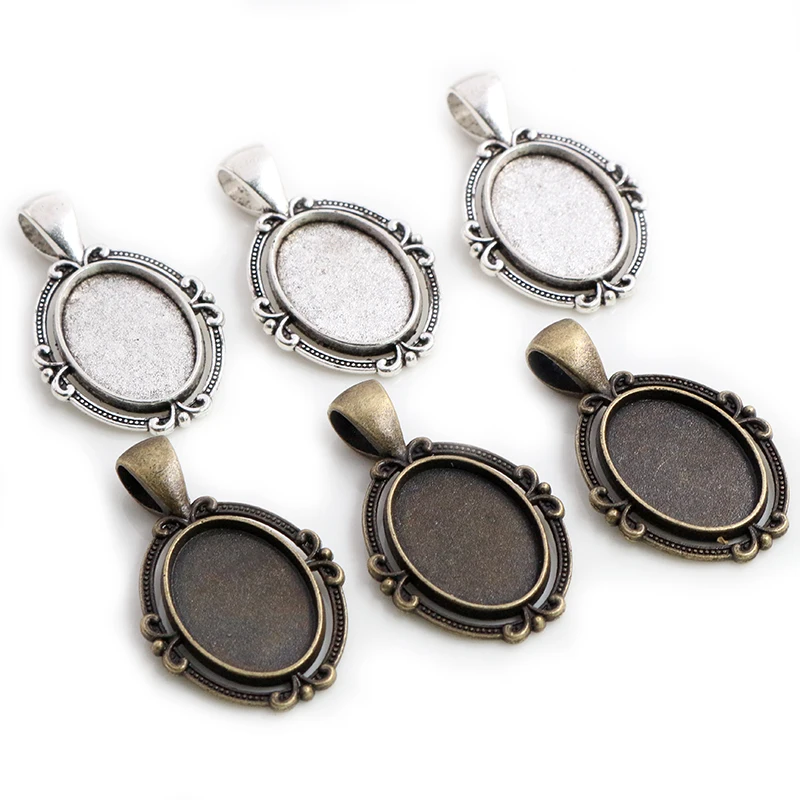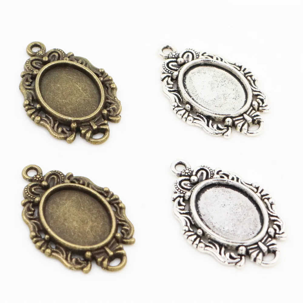 10pcs New Fashion 18x13mm Inner Size Antique Bronze Silver Color Classic Oval Flower Style Cabochon Base Setting Charms Pendant