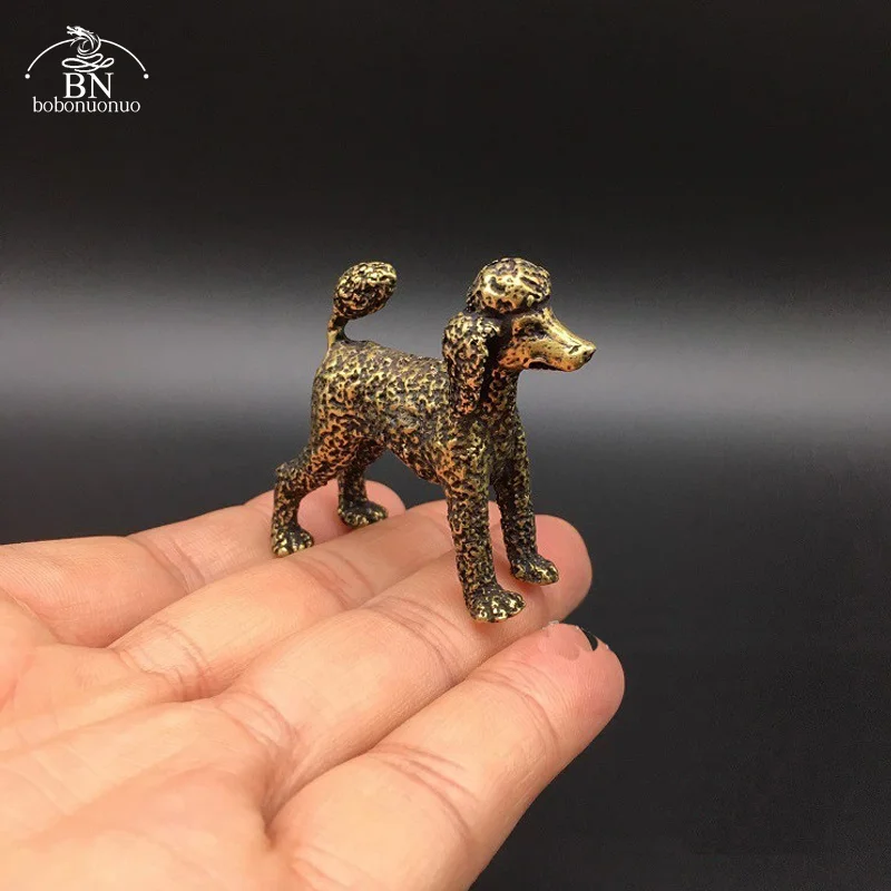 Pure Copper Cute Dog Statue Feng Shui Ornament Bronze Standing Poodle Figurines Lucky Desk Decorations Accessories Home Decor