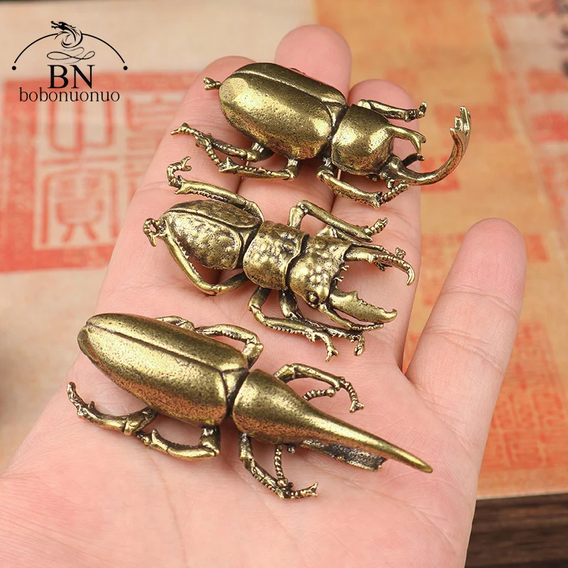 Antique Bronze Beetles Miniature Figurine Small Desk Decorations Vintage Copper Insect Tea Pets Ornament Home Decor Accessories