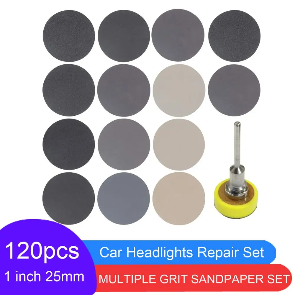 121 Pcs Set 1 Inch Wet&Dry Sandpaper Sanding Disc Hook loop With Sanding Pad For Car headlight Repair Wood Glass Stone Sanding