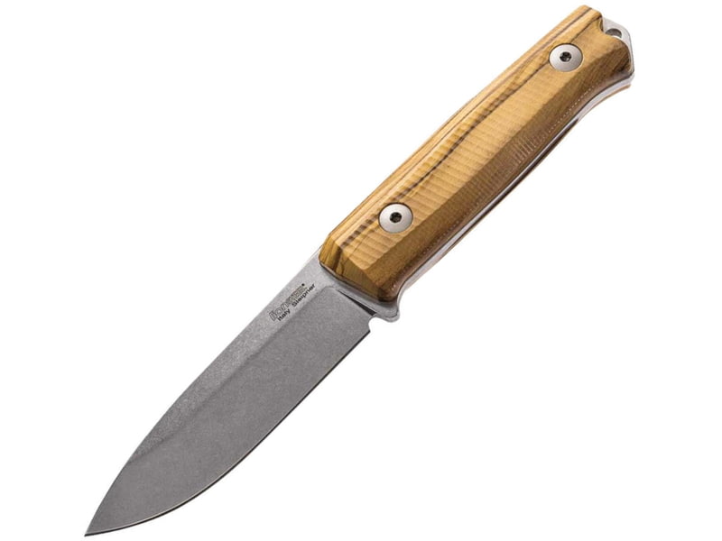 Lionsteel Bushcraft B40 Olive Wood Fixed Blade Knife 8.88in Overall 3.88in Stonewash Sleipner Tool Steel Blade Olive Wood Handle Brown Leather Belt