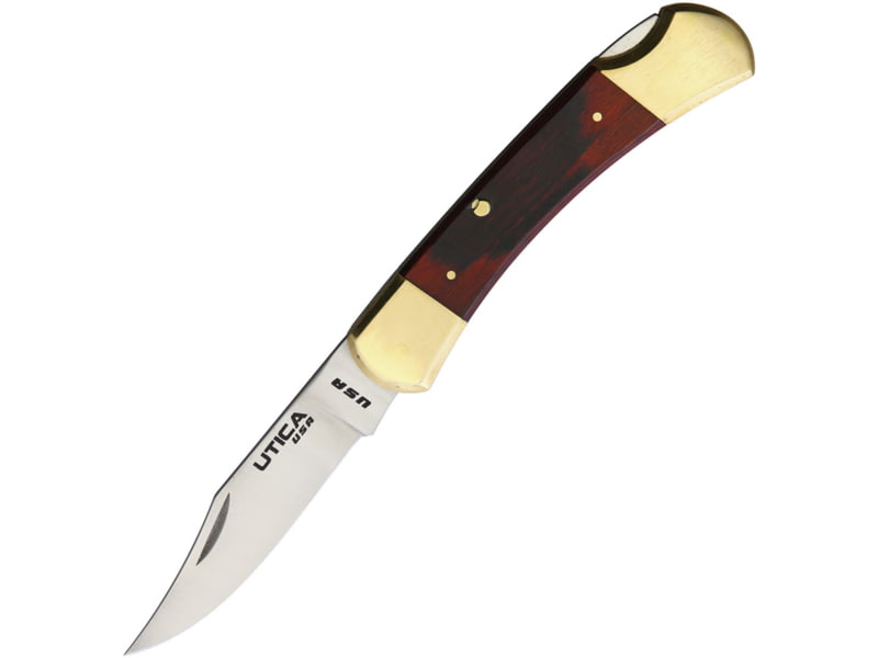 Utica Original II Lockback Folding Knife 3.75" satin finish stainless clip point blade Brown wood handle 11-17101CP
