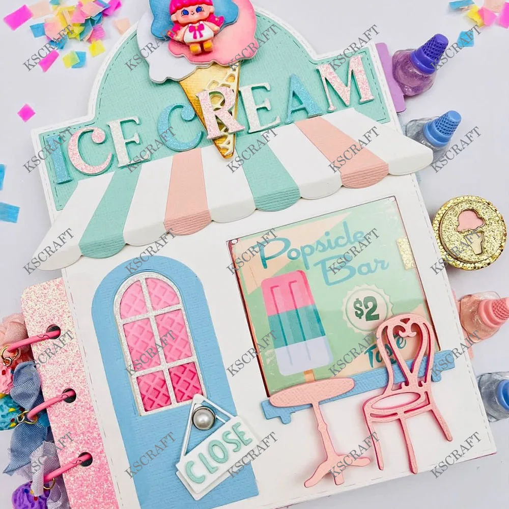 KSCRAFT Ice Cream Parlor Mini Album Metal Cutting Dies Stencils for DIY Scrapbooking Decorative Embossing DIY Paper Cards