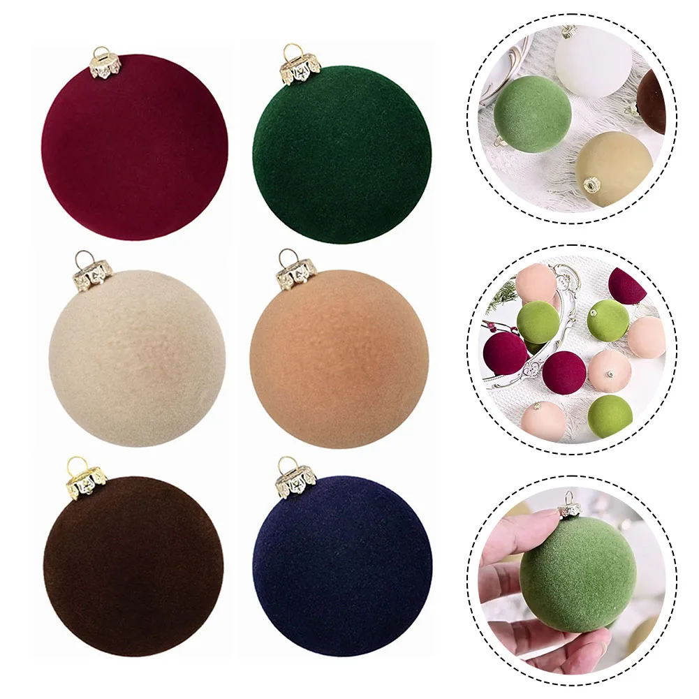 6pcs 5cm Velvet Christmas Tree Ornaments Plush Flocked Hanging Balls for Holiday Decor, Christmas Decoration Xmas Clearance
