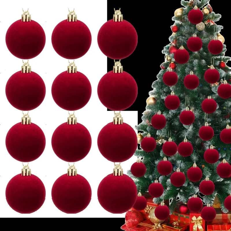 12PC Velvet Christmas Ornaments Balls For Christmas Tree Wall Window Decorations For Home Decor Xmas Party Accessories