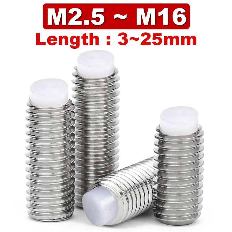 3~5P POM Machine Rice 304 Stainless Steel Nylon Head Buffer Screw Plastic Head Plunger Top Wire Plastic Wave Bead M2.5 M3 M4~M16