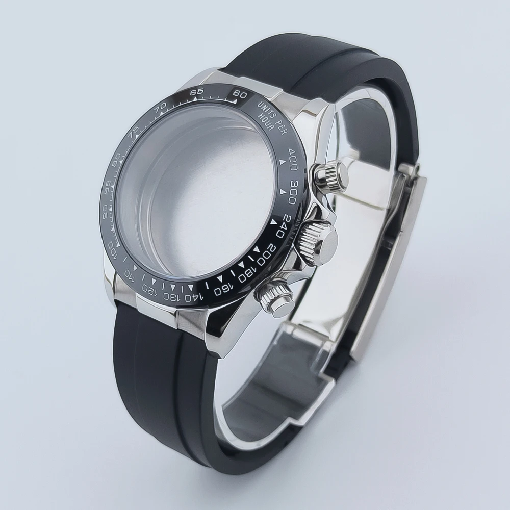 NEITON 40mm Sapphire Glass Quart Stainless Steel Case Rubber Strap Fit VK63 Quart Movement