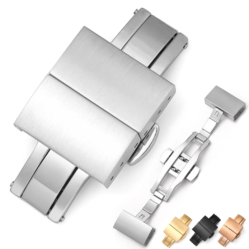 High Quality 316L Stainless Steel Butterfly Buckles 16mm 18mm 20mm 22mm Double Press Metal Clasps Rubber Band Deployment Buckle