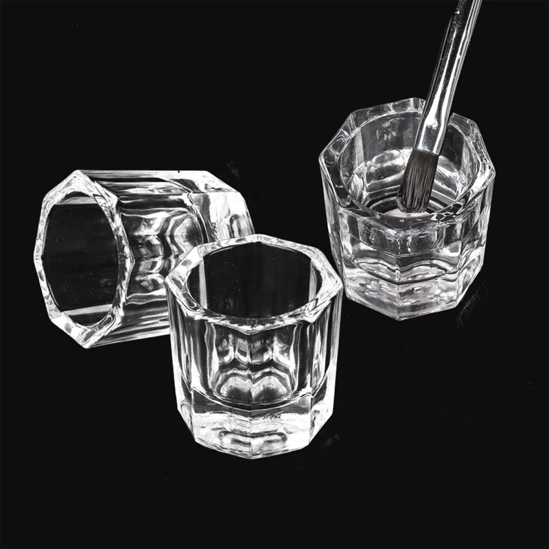 1Pc Crystal Glass Clear Acrylic Small Octagonal Powder Liquid Nail Cup Dappen Dish Lid Bowl Cup Holder Equipment Nail Tools