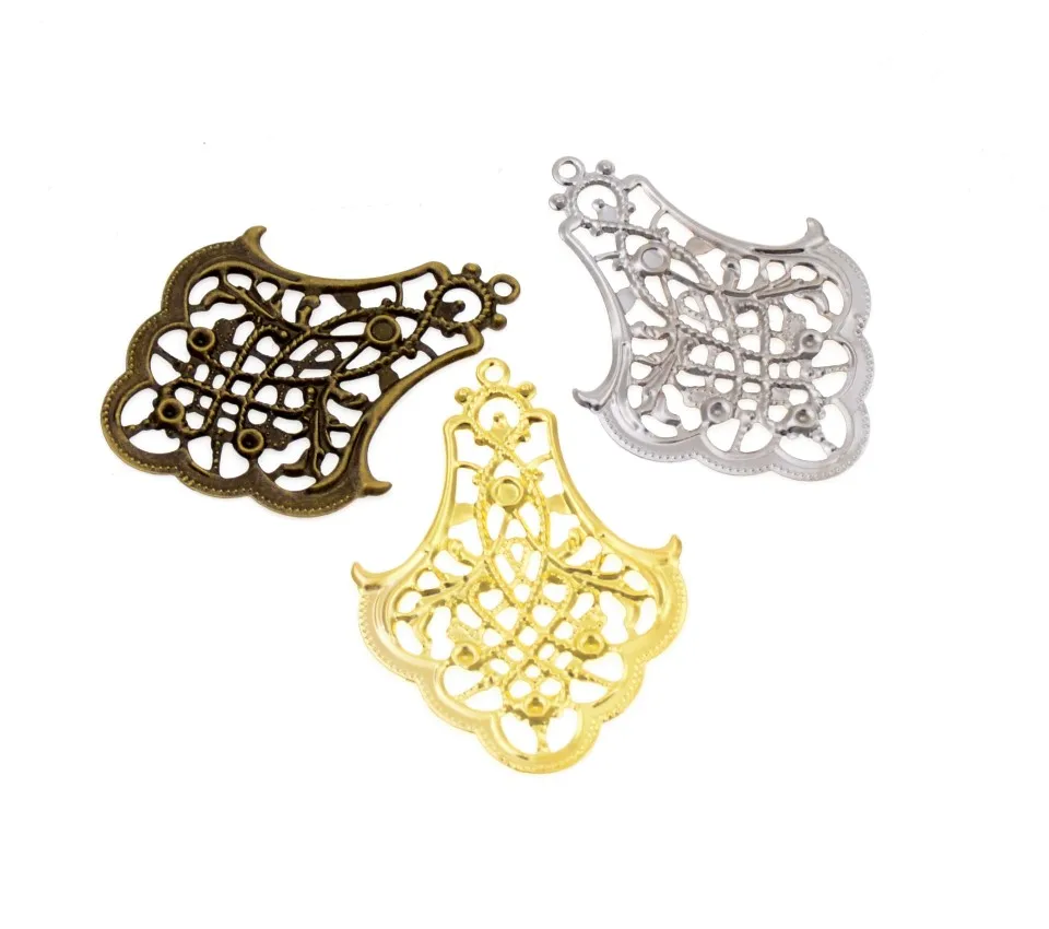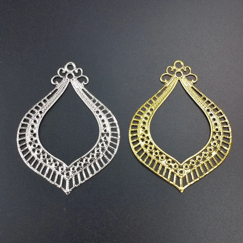 10pcs /lot 48x65mm Filigree drop Wraps Flower Connectors Metal Crafts Gift Decoration DIY Findings Ear accessories