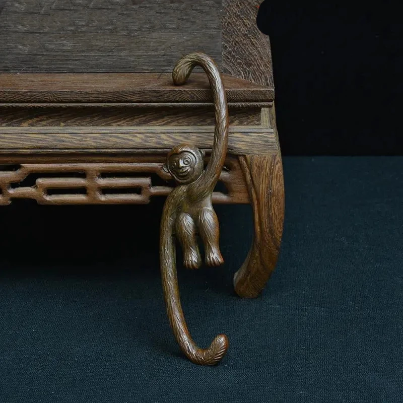 Antique Copper Monkey Hook Small Statue Ornament Vintage Metal Animal Figurines Desktop Decorations Accessories Home Decor Craft