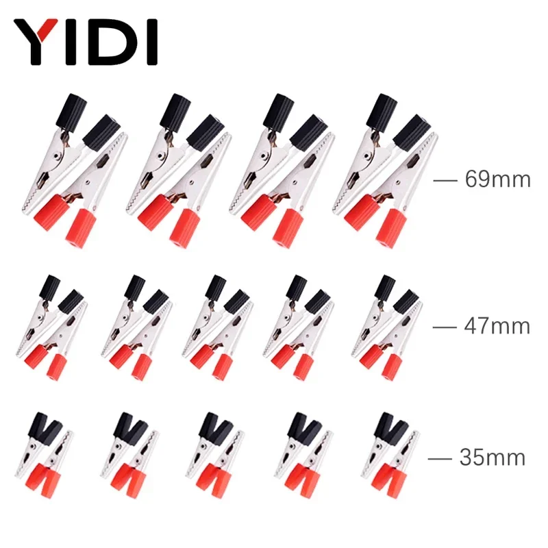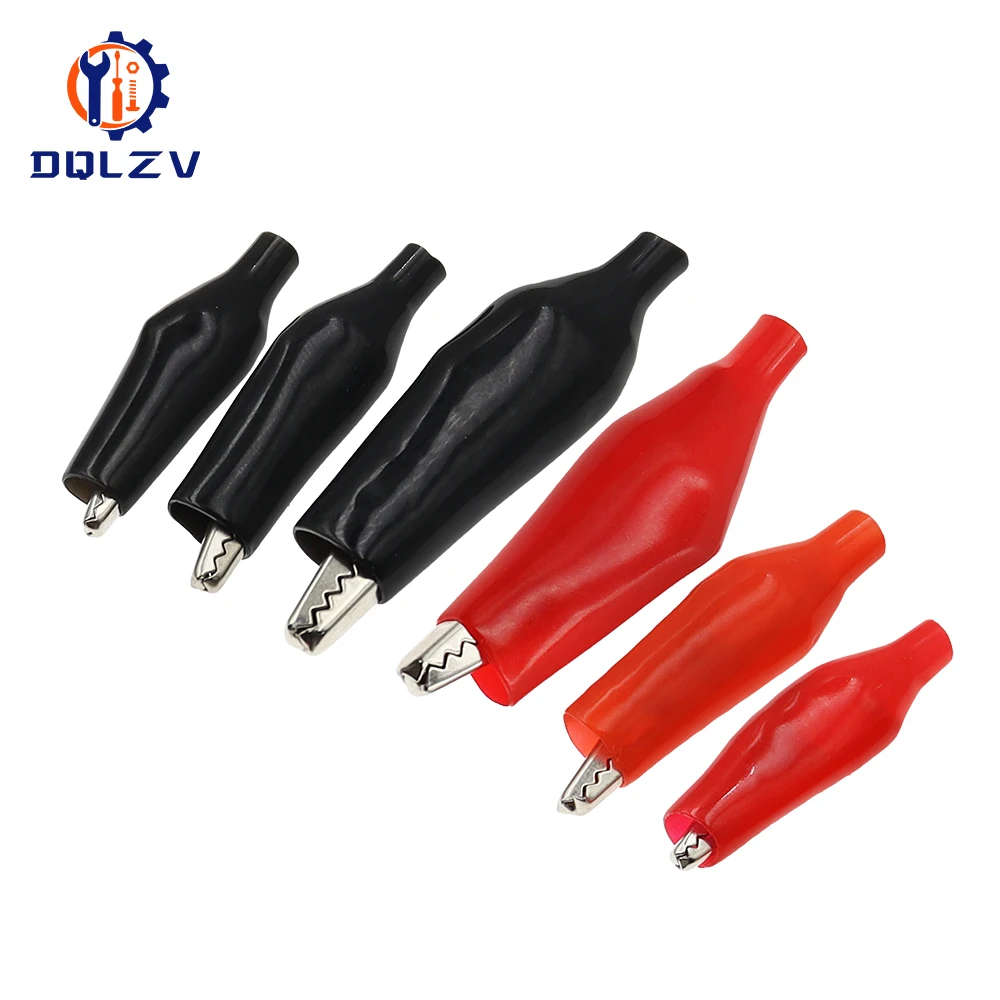 10pcs Insulated Crocodile Clips, 35mm 47mm 70mm Cable Battery Alligator Clamp Red Black Plastic Handle Metal Test Clips
