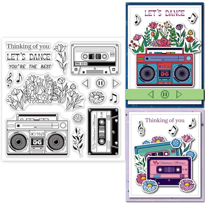 1pc 6x6in Radio Clear Stamps Tapes Silicone Stamps Flowers Words Transparent Rubber Seal Stamps for Card Making DIY Scrapbooking