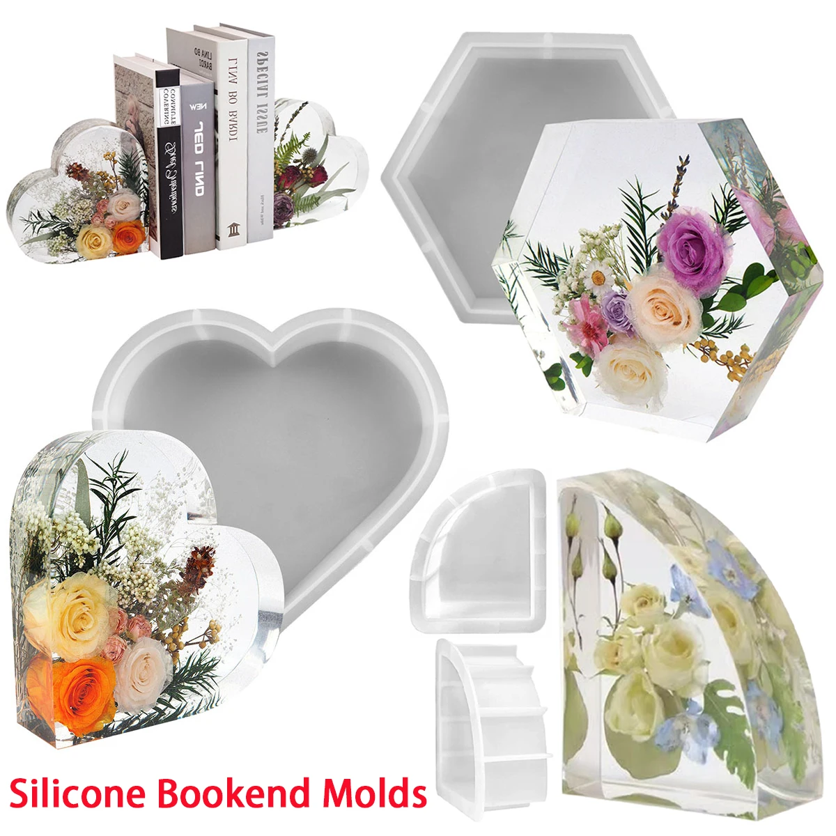 2/1Pcs Silicone Molds for Resin, Large Heart Resin Mold DIY Crystal Cube Mold for Flower Preservation Bookend Epoxy Resin Castin