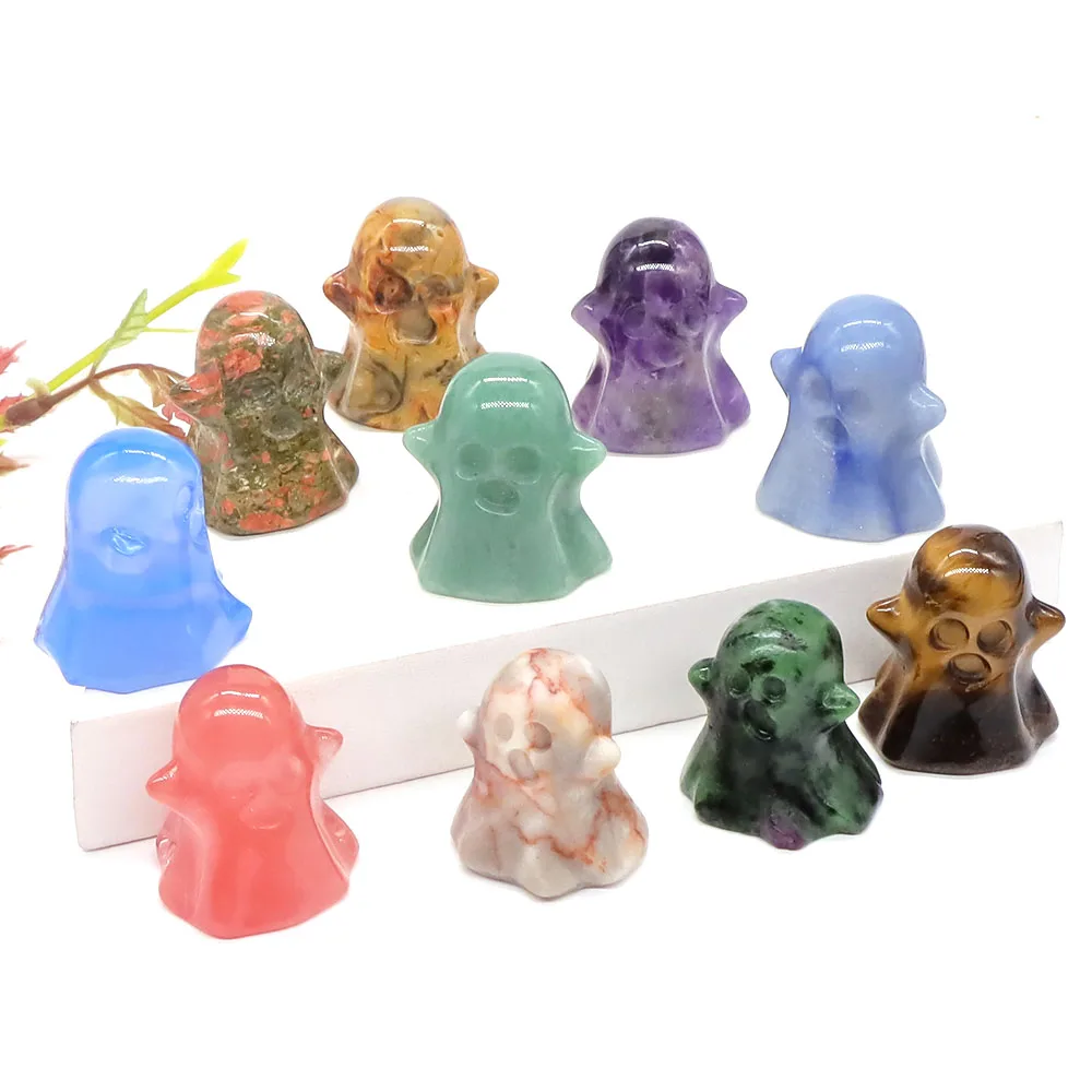 1.2" Ghost Statue Natural Tiger Eye Rose Quartz Crystal Carved Reiki Healing Stone Figurine Craft Home Decoration Halloween Gift
