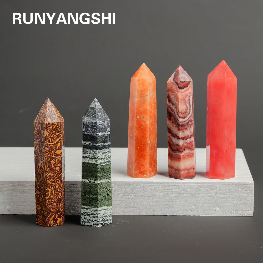 7-8cm Natural Crystal Point Quartz Rainbow Wand Crystal Column Rose Quartz Rock Mineral Specimen Home Decor Reiki Healing stone
