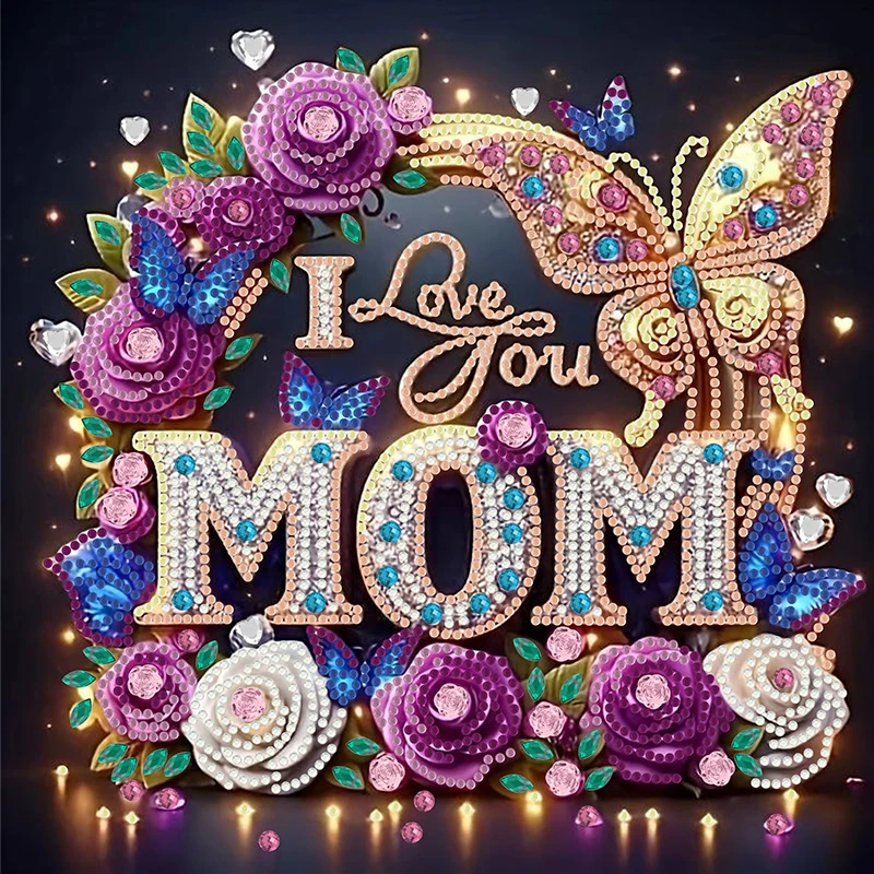 DIY Diamond Painting Kit, "I Love Your Mother" - a blooming crystal like flower with unique irregular and circular diamonds, acr