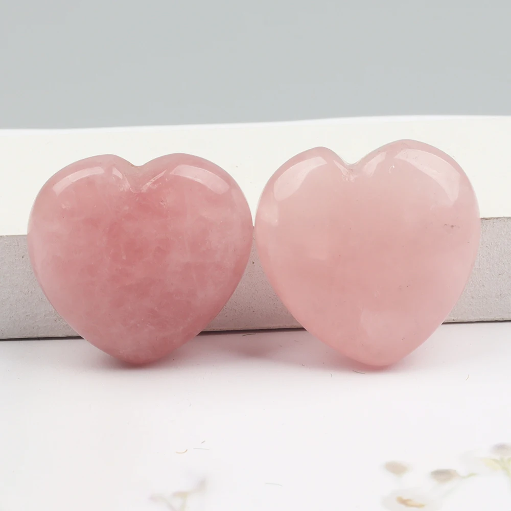 30mm Natural Semi-precious Heart Stone Ornaments Rose Quartz Crystal Reiki Healing Love Heart Figurine Home Decoration