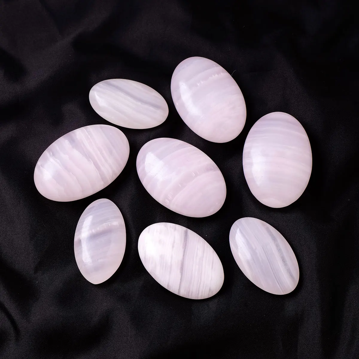 1pc Natural Crystal Rose Calcite Palm Stone Healing Stone Crystal Worry Gemstone Hand Home Decoration