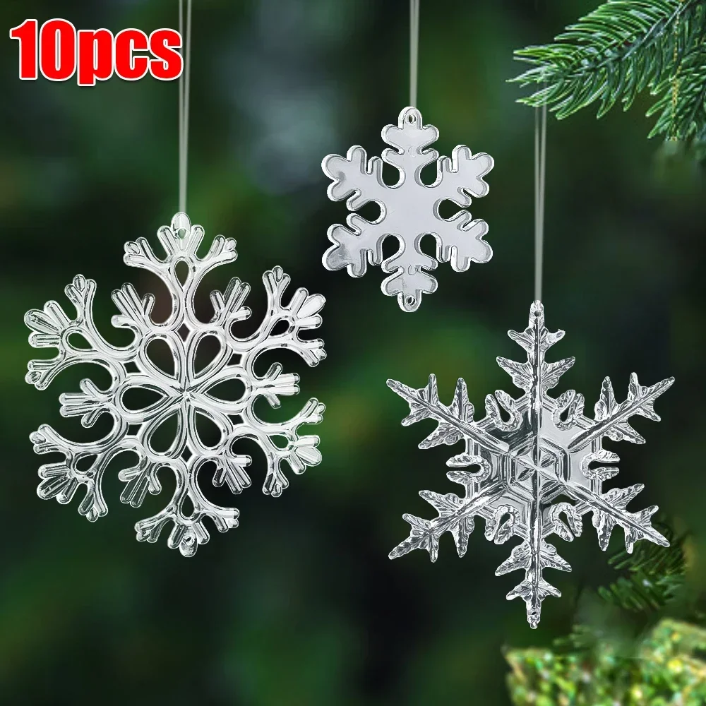 10pcs Christmas Snowflake Pendant Acrylic Transparent Crystal Pendant Ornaments Christmas Tree Pendant New Year Home Decorations