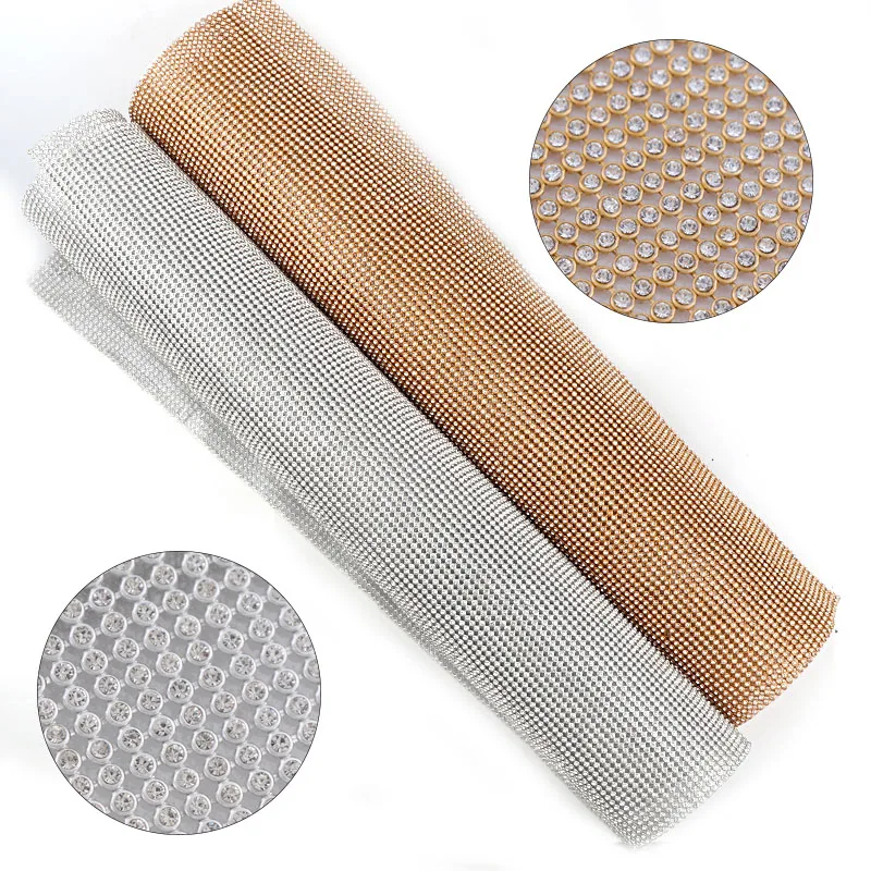 1 Pc 3mm Glass Rhinestone+Gold/Silver Aluminum Rhinestone Mesh Trim ABS Plastic HotFix For DIY Wedding Dress Jewelry