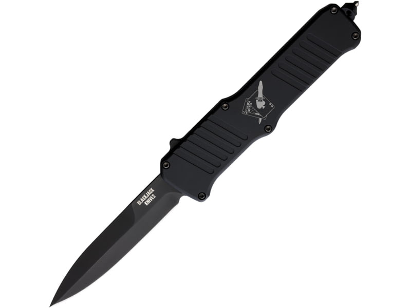 Blackjack OTF Bayonet Automatic Folding Knife 5.63in Closed 4in Black Matte 154CM SS Bayonet Blade Black Matte Aluminum Handle Nylon Case 54099-EXLBJ