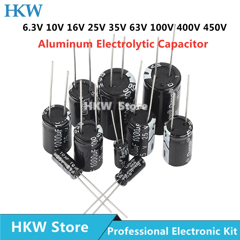 Aluminum Electrolytic Capacitor 6.3V 10V 16V 25V 35V 50V 63V 100V 400V 450V 47UF 100UF 220UF 330UF 470UF 680UF 1000UF 1500UF 20%