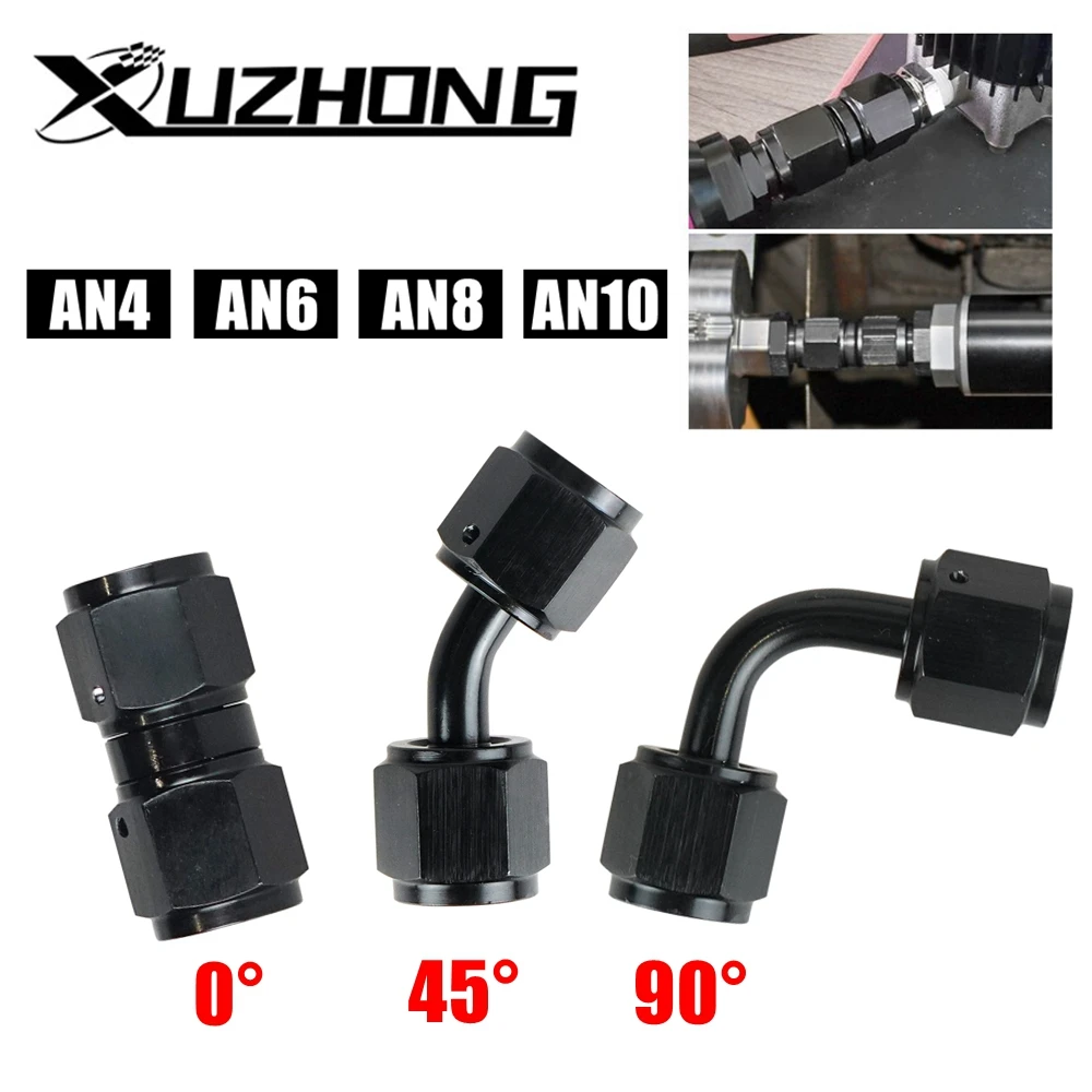 AN4/AN6/AN8/AN10 Female to Female Union Straight 0°/45°/90° Degrees Swivel Hose End Fitting Adaptors Aluminum Anodized Black