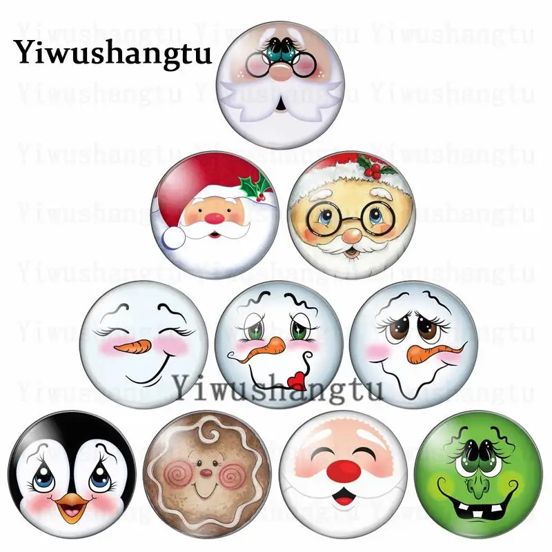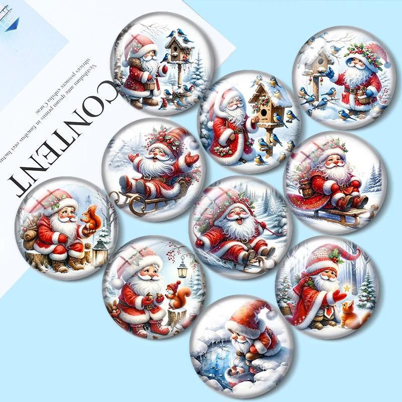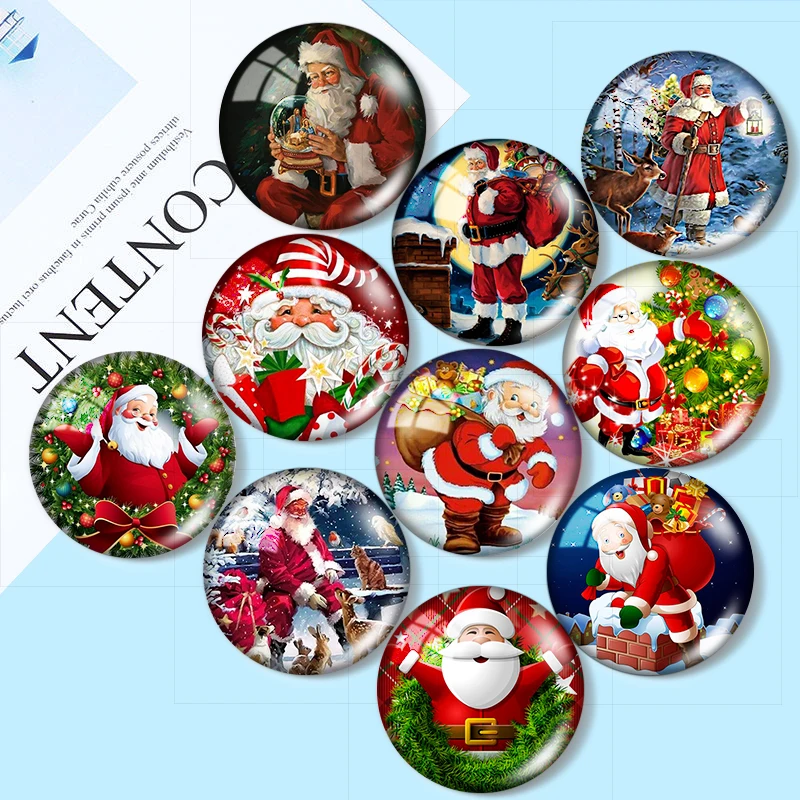 Christmas Santa Claus Happy New Year 10pcs mixed 12mm/18mm/20mm/25mm Round photo glass cabochon demo flat back Making findings