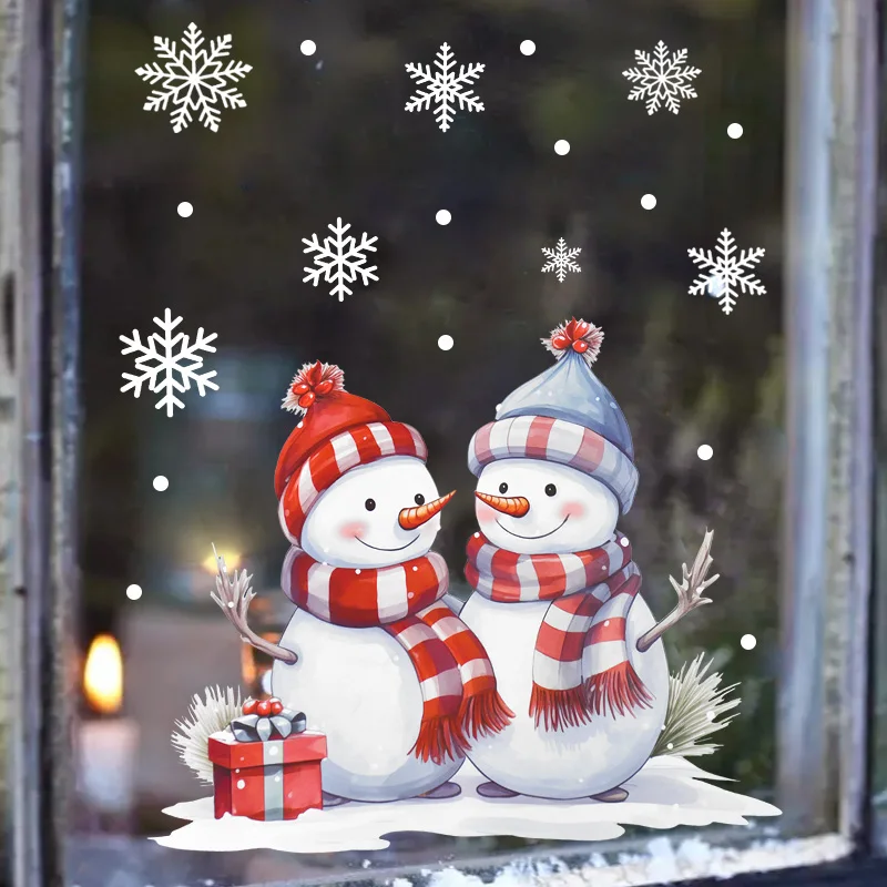 Cartoon Christmas Window Sticker Decoration 2025 New Year Snowman Santa Claus Home Kids Room Wall Glass Static Sticker Removable