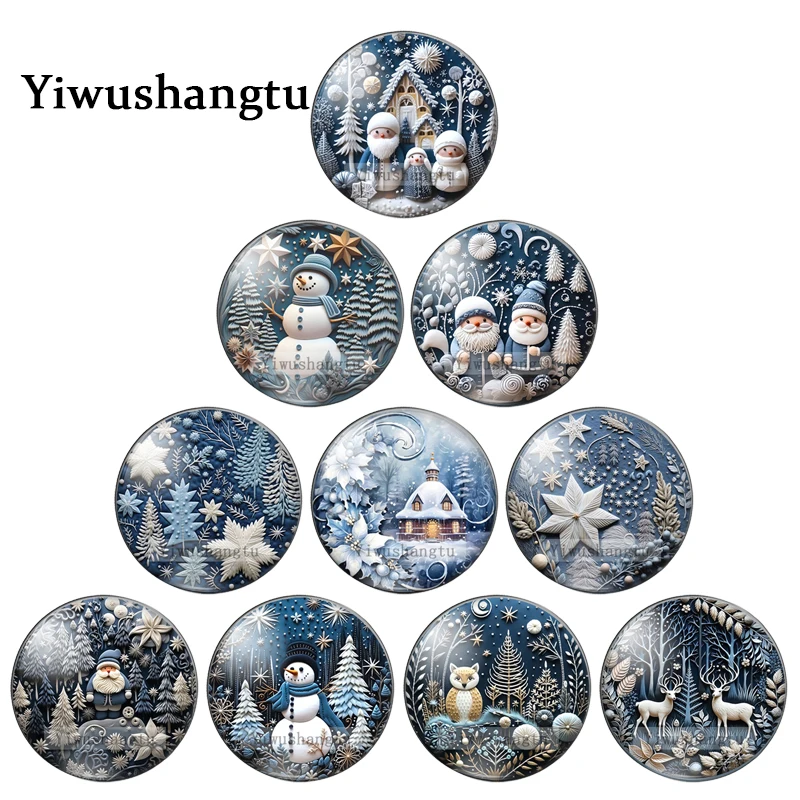 Blue Christmas Scenery Santa Claus Patterns 12mm/18mm/20mm/25mm Round photo glass cabochon demo flat back Making findings
