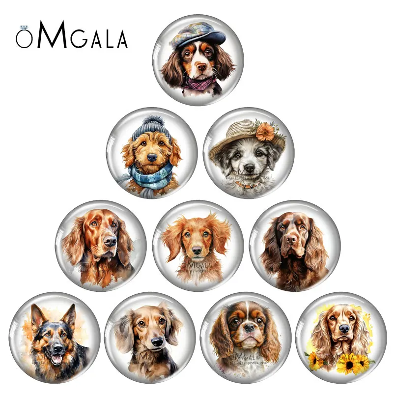 Lovely Cartoon Pet Dog Watercolor Paintings 12mm/18mm/20mm/25mm Round Photo glass cabochon demo flat back Making findings