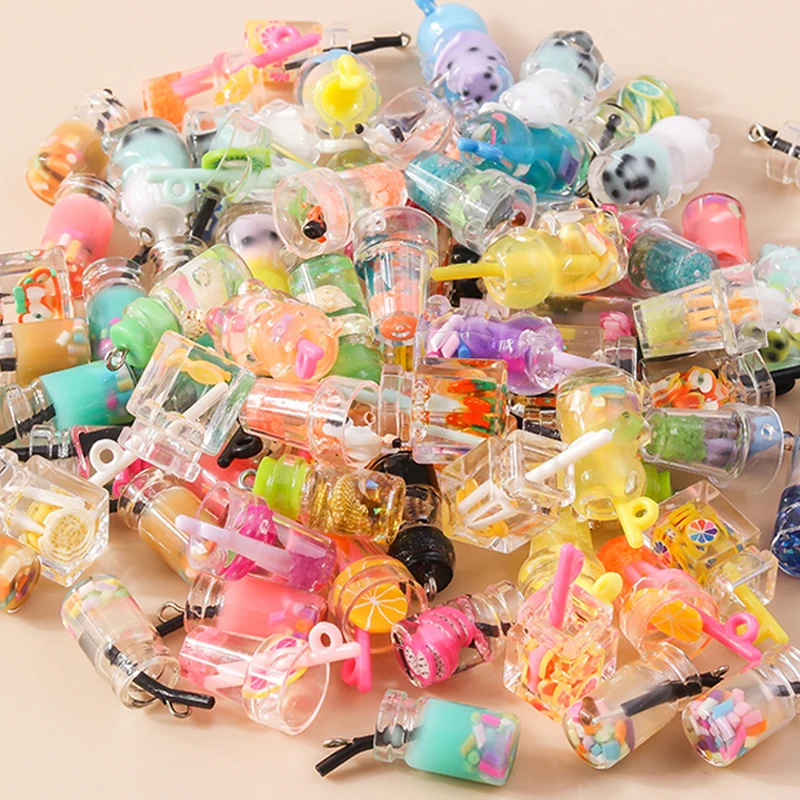 10pcs Milk Tea Cup Conch Shell Glass Bottle Charms Diy Wishing Drifting Bottle Pendant for Keychain Bracelet DIY Jewelry Making