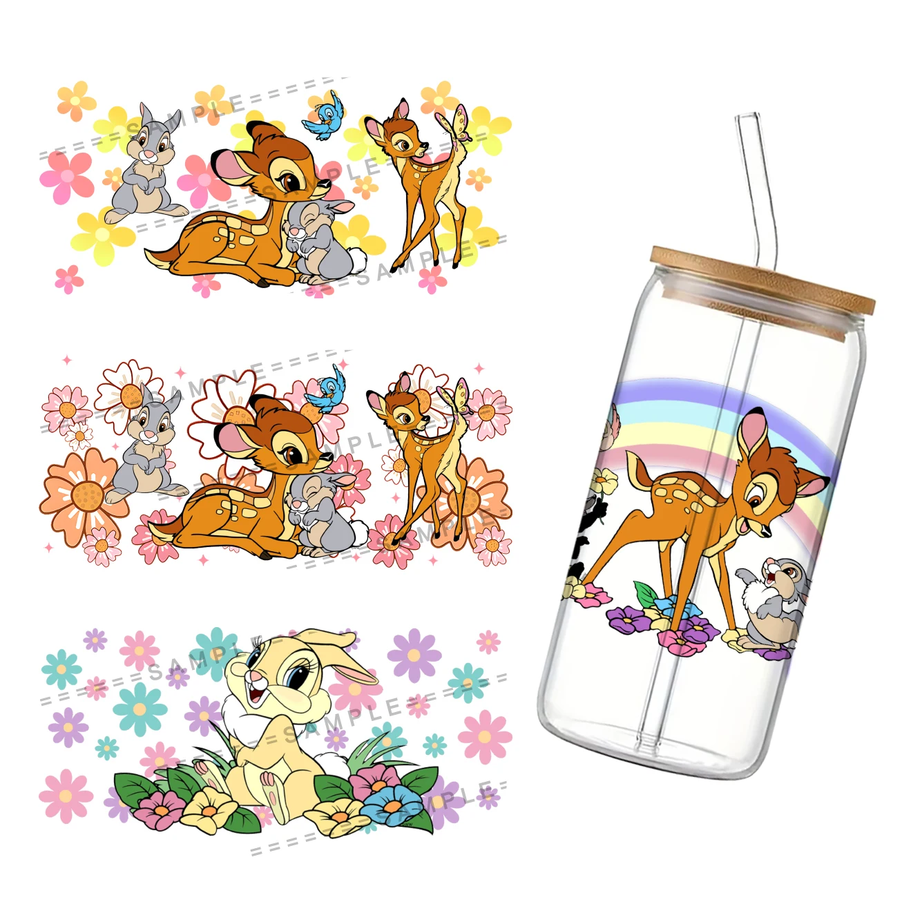 11x24cm Disney Bambi UV DTF Cup Wrap for 16Oz Libbey Glass Can DIY Transfer Sticker Bambi Deer