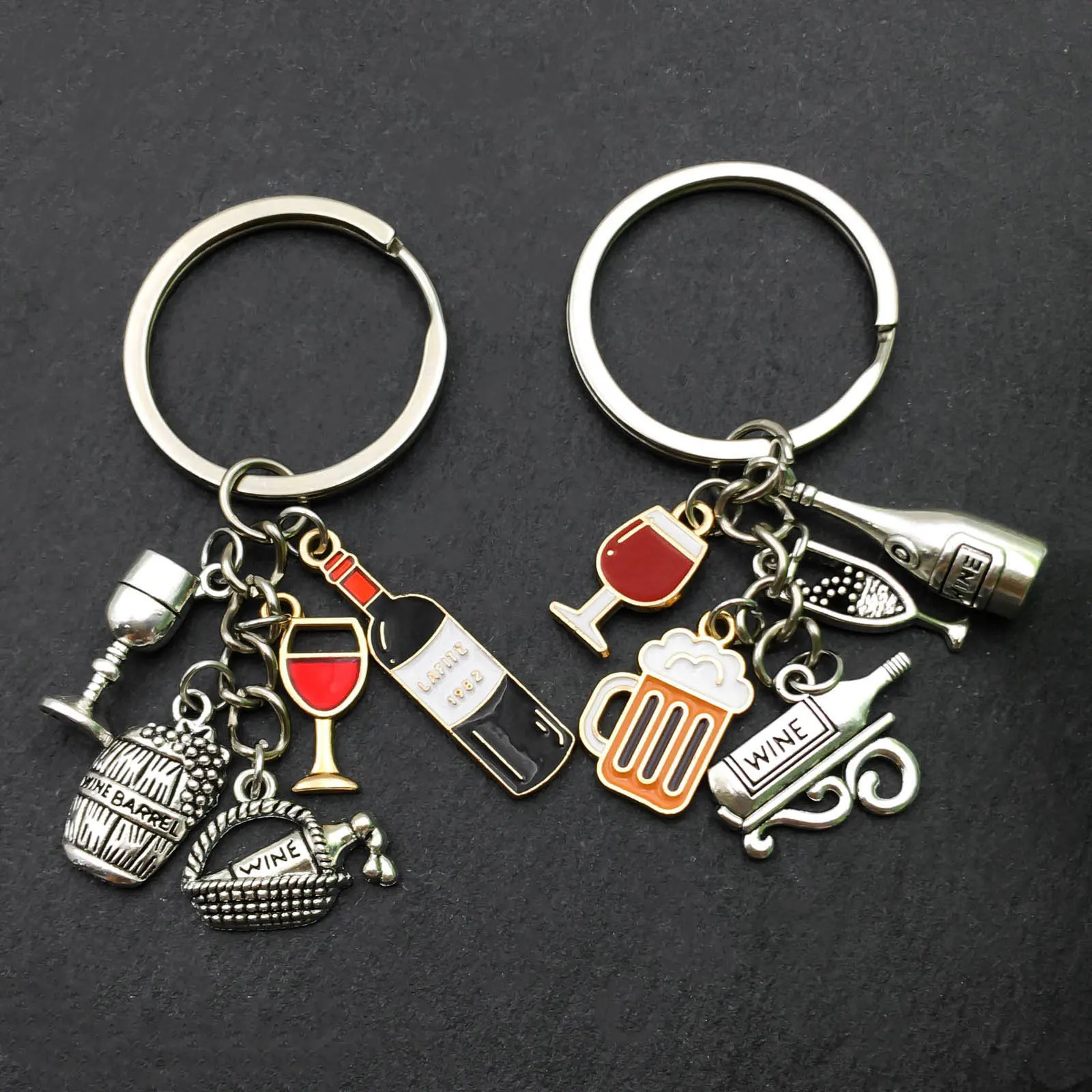 1Pc Metal Enamel Keychain For Men, Red Wine Glass Keychain For Wine Enthusiast, Party Holiday Gift