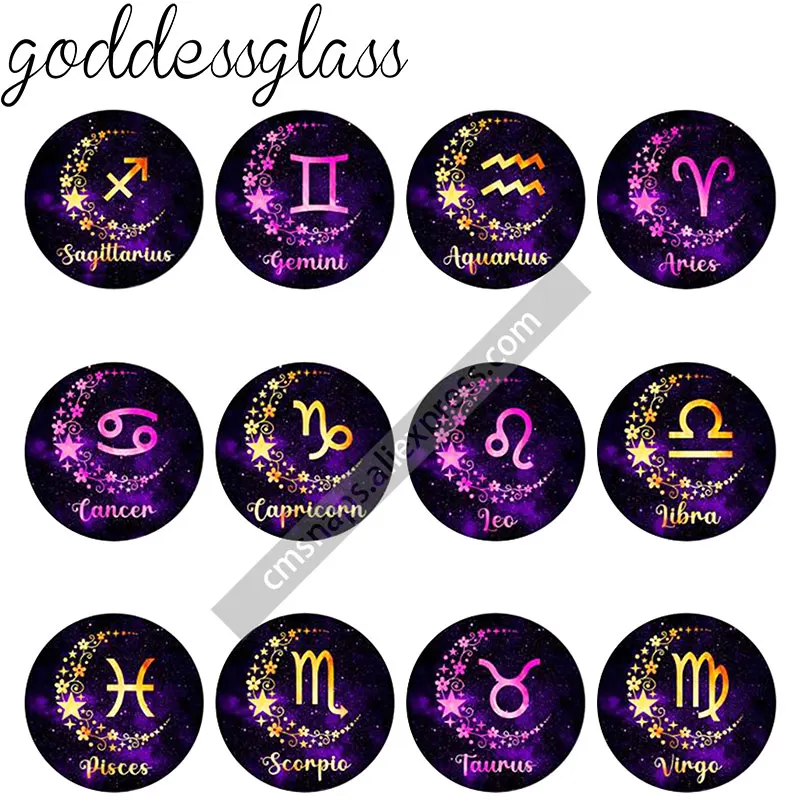 Zodiac Sign 12 Constellation Moon&Stars 12pcs 12mm/18mm/20mm/25mm Round photo glass cabochon demo flat back Making findings