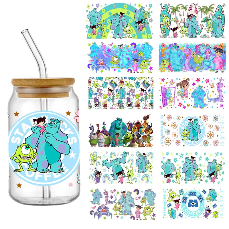 Disney Monsters Inc Wrap Stickers Waterproof UV DTF Cup Mug Wraps Sticker DIY 3D Wrap Decal For 16oz Libbey Glass