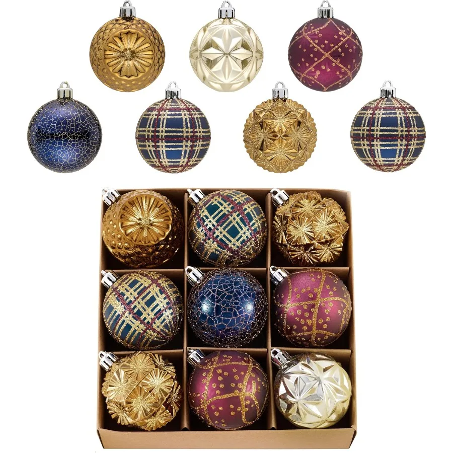 Luxury shatterproof bronze copper gold and purple Christmas tree ornaments 9ct 2.36 inches hanging ball decorations for festive