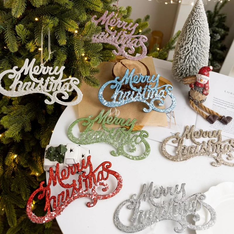 1pc Christmas Merry Hanging Decoration Plastic Red Gold Glitter Hanging Sign Christmas Doorway Garden Store Hanging Text