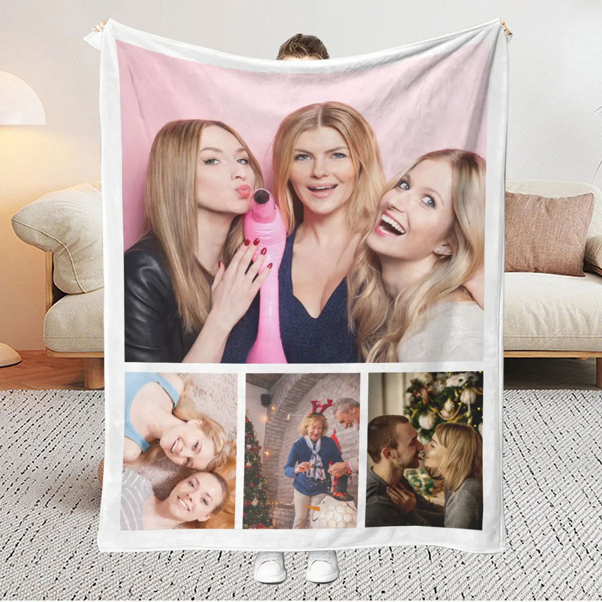 1Pc Customized Four-Gongge Customized Personalized Blanket Witness Love for Love - Photo Hd Printing to Flannel Blanket, Soft and Warm for Sofa, Bed, Office, Car and Outdoor Travel - All Seasons