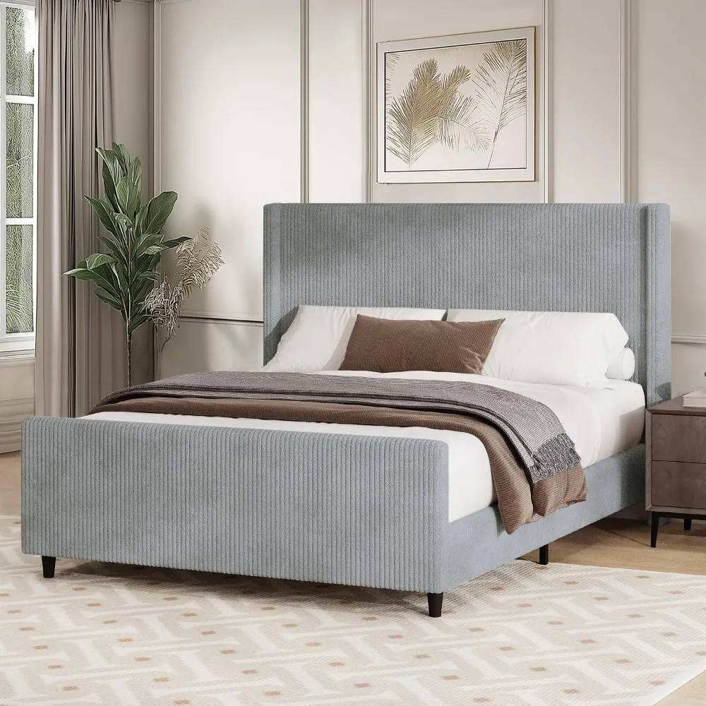 Queen Size Corduroy Upholstered Platform Bed Frame with Tufted Headboard and Footboard, No Box Spring Required, Easy to Assemble
