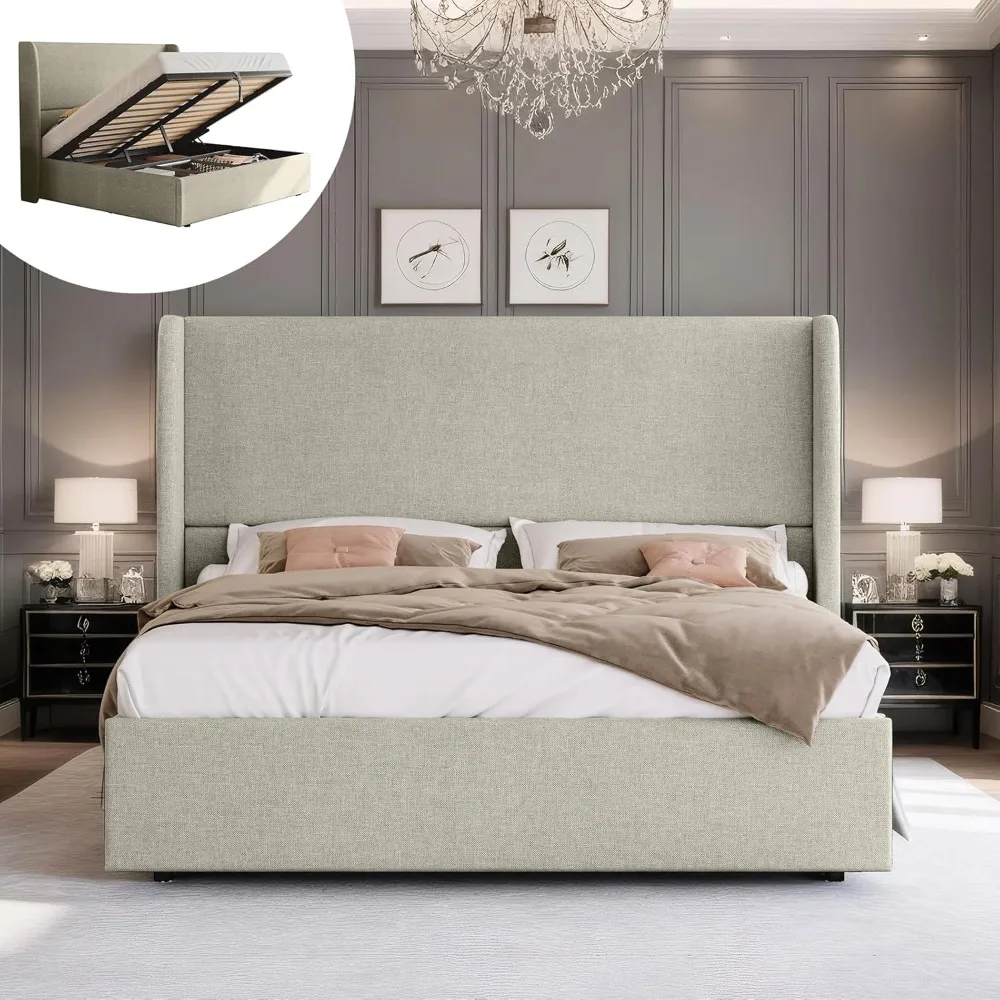 Lift Up Storage Bed Queen Size Upholstered Platform Bed Frame with Hydraulic Storage/Modern Wingback Headboard/No Box Sp