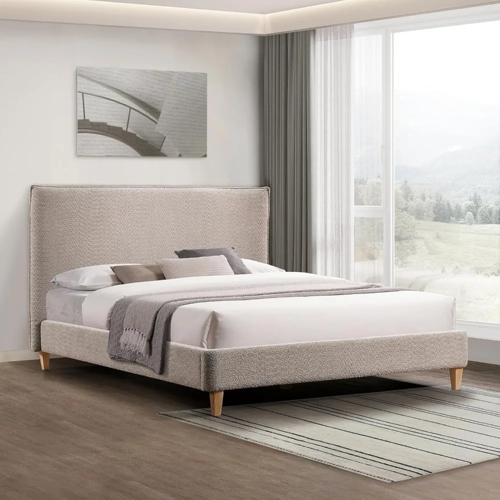 Boucle Upholstered Platform Bed Frame Queen Size with Headboard, Mattress Foundation/Strong Wooden Slats Support/No Box Spring