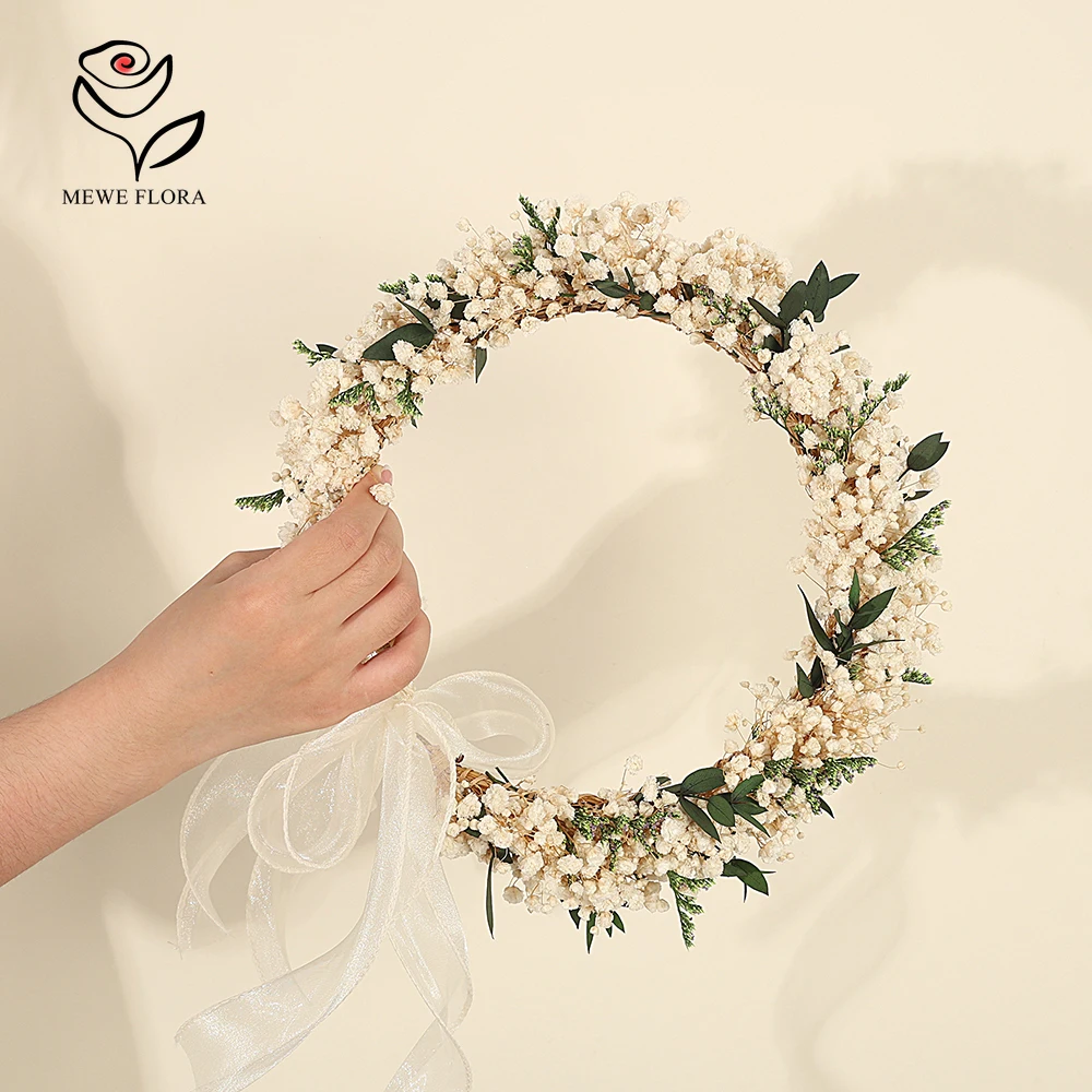 Dried Flowers Wreath Handmade Adjustable Garland Home Wall Door Decoration Natural Gypsophila Wedding Bride Flower Girl Headband