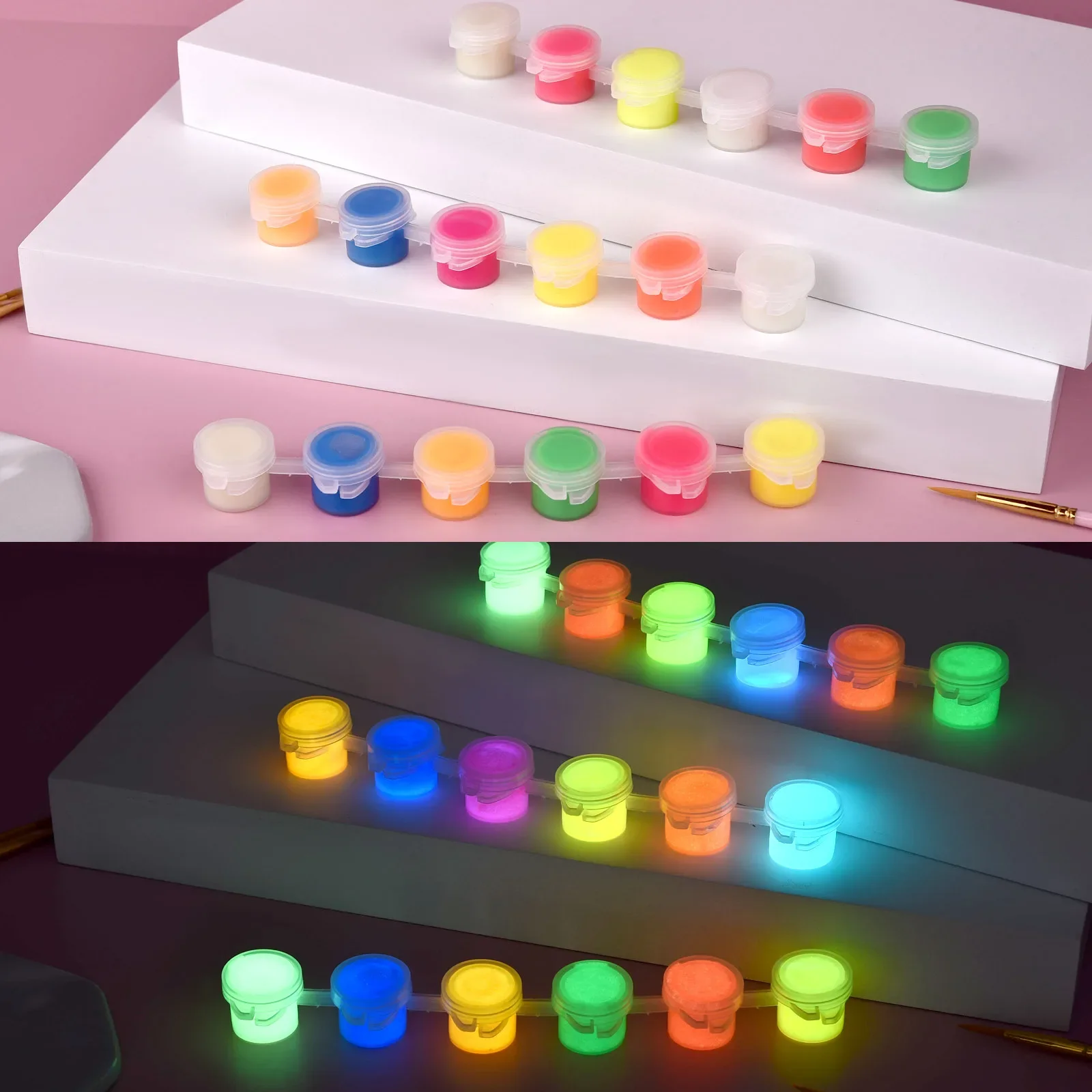 6colors/Set Fluorescent Acrylic Luminous Pigment Glow In Dark Hand Painted DIY Halloween Party Wall Light Absorbing Pigments