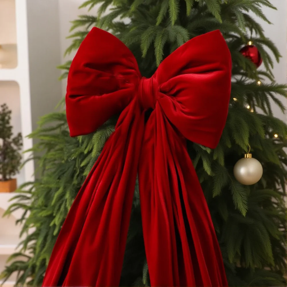 Christmas Tree Bow Flocked Flocked Christmas Bow Wine Red Bow Extra-Large For Holiday Display Christmas Tree Doorway