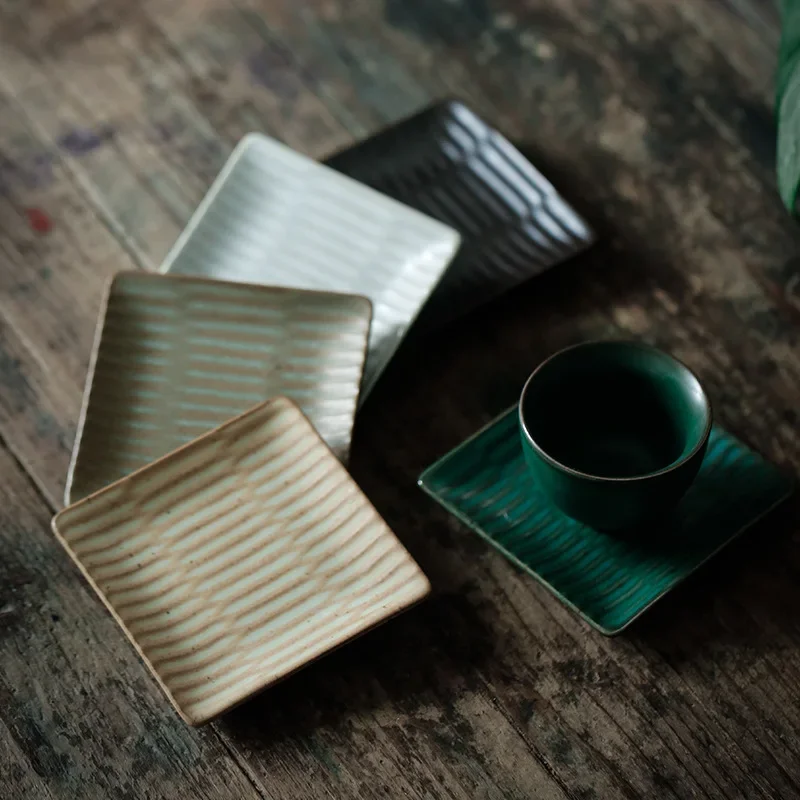 Rough Ceramic Square Coasters Japanese Retro Home Kitchen Anti-scald Heat Insulation Cup Base Kung Fu Tea Ceremony Accessories