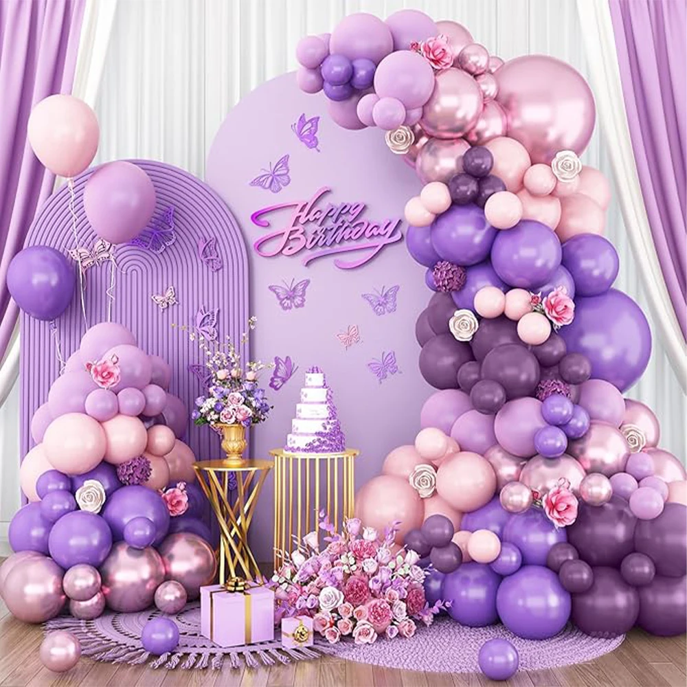 102pcs Retro Purple Pink Lavender Purple Lilac Pink Metallic Latex Balloon Garland for Girl Women Birthday Wedding Party Decor