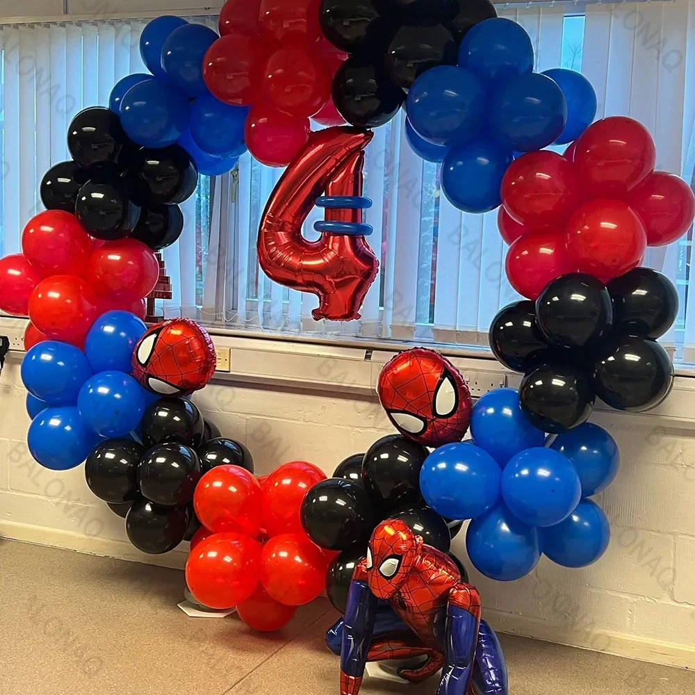 96pcs 3D Spiderman Head Balloon Garland Arch Kit Red Blue Latex Ballons Superhero Theme Birthday Party Baby Shower Decoration